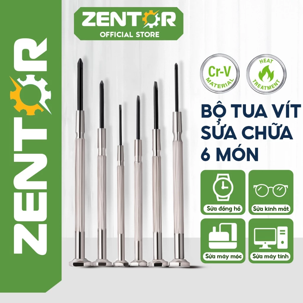 Bộ tua vít 6 món Zentor Bộ tuốc nơ vít chất liệu thép chuyên sửa chữa đồng hồ, kính mắt, linh kiện điện tử | 86% | 9,000₫ | 18 | Mở Shopee | |