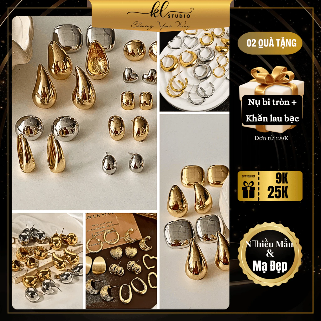 Bông Tai, Khuyên Tai Mạ Vàng Bạc Không Gỉ Phong Cách Âu Mỹ Đơn Giản Sang Trọng KL.STUDIO | 52% | 29,100₫ | 800 | Mở Shopee | |