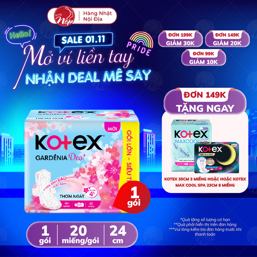 Băng vệ sinh Kotex Gardenia Deo 20 miếng, siêu mỏng mặt bông mềm mại - Nepbeauty | 55% | 29,000₫ | 20 | Mở Shopee | |
