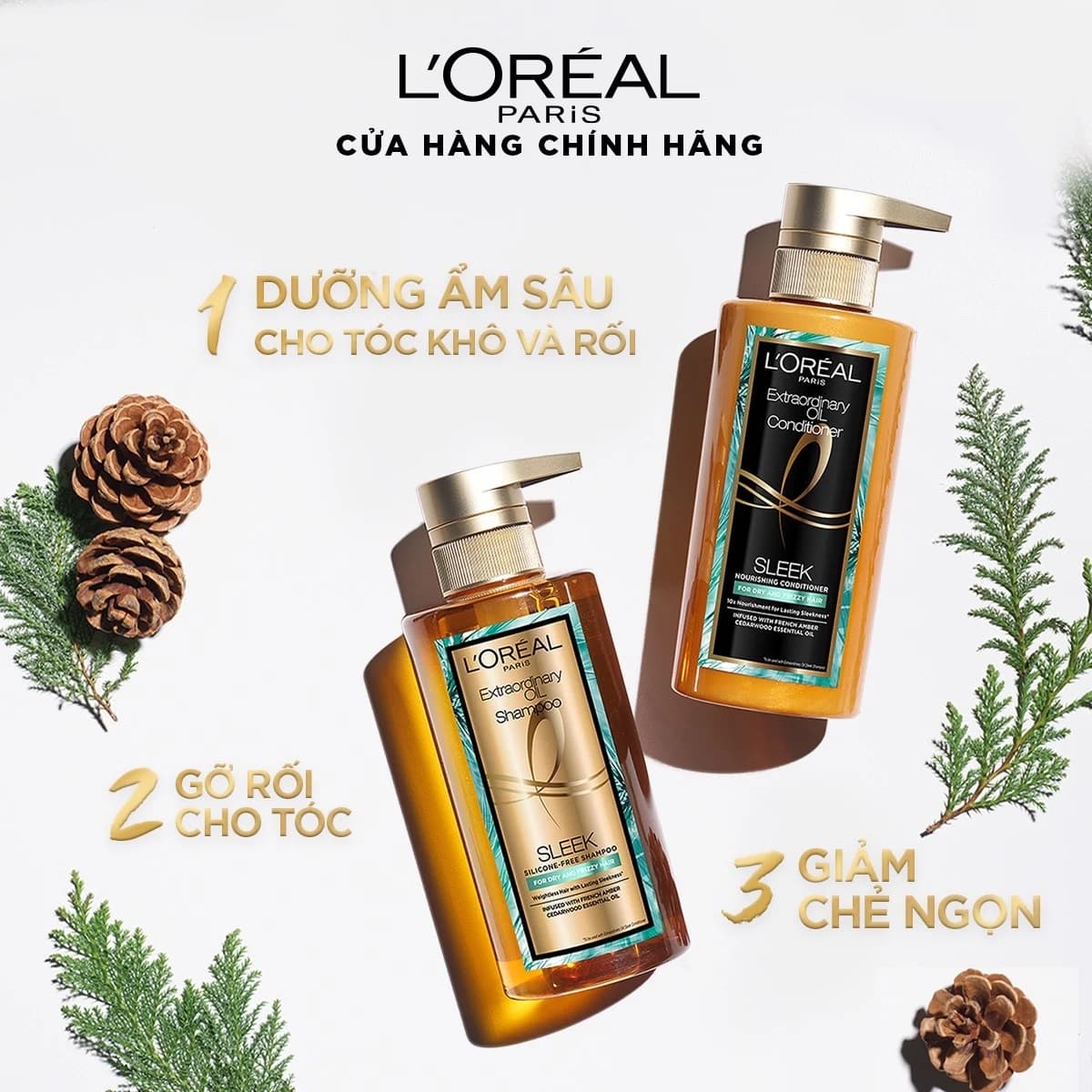 Thành phần của dầu gội L'Oreal Paris Extraordinary Oil Smooth dưỡng tóc được chiết xuất từ tinh chất gỗ tuyết tùng 100% từ rừng cây tại Pháp. Tinh chất này giúp phục hồi lớp biểu bì da đầu bị hư tổn. Tóc không những mềm mượt chắc khỏe mà da đầu còn sạch sẽ, khỏe hơn sau nhiều lần sử dụng.