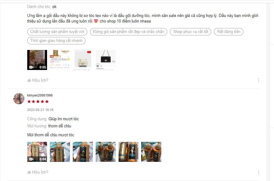 Đánh giá thực tế của khách hàng khi sử dụng sản phẩm dầu gội Loreal Paris trên Shopee