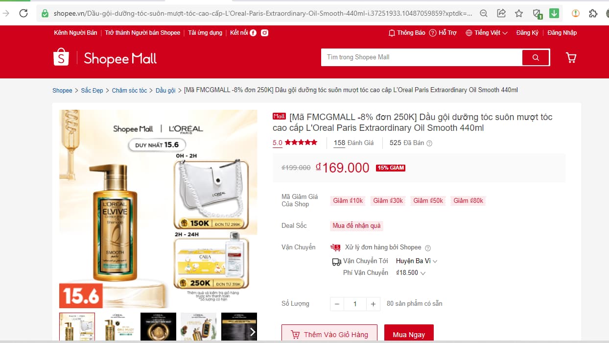 Bước 1: Copy link sản phẩm trên Shopee hoặc có thể lấy Link ngay trong bài. Ví dụ link của sản phẩm bạn muốn mua là dầu gội L'Oreal Paris Extraordinary Oil Smooth