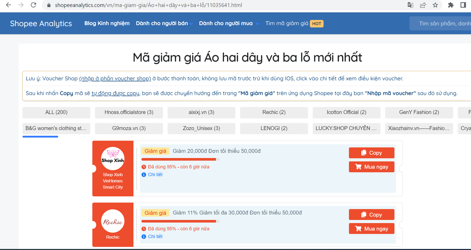 Bước 1: Truy cập trực tiếp mã giảm giá Áo hai dây và ba lỗ hôm nay