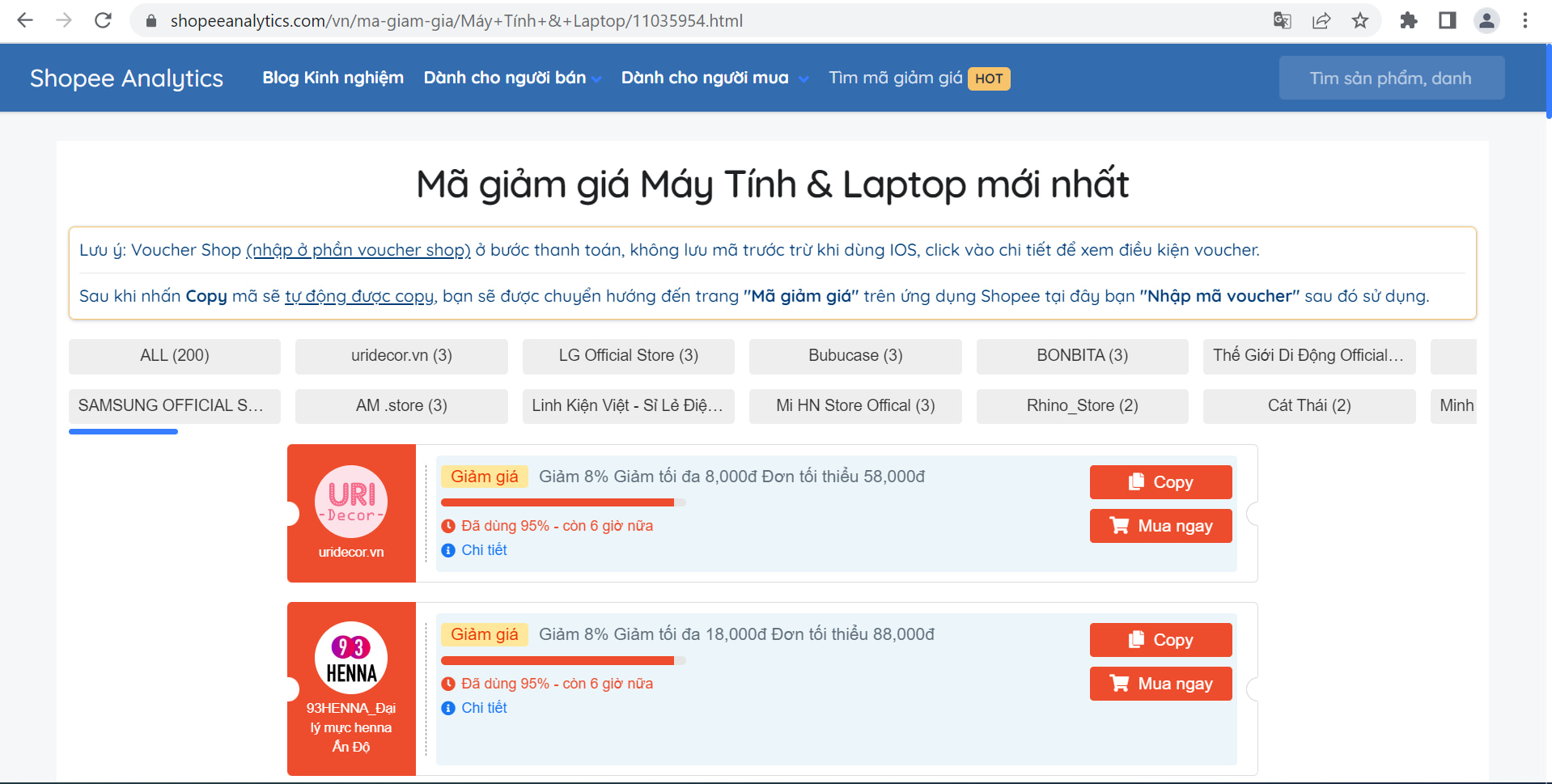 Bước 1: Truy cập trực tiếp mã giảm giá máy tính và laptop hôm nay.