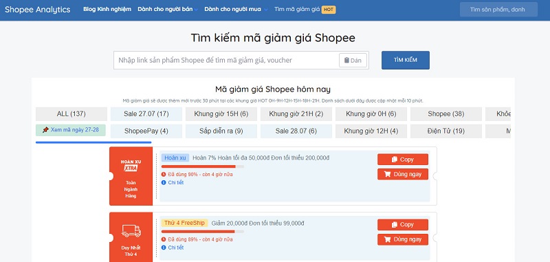 Vui lòng gắn link sản phẩm vào và ấn Tìm kiếm. Phần Trình duyệt sẽ hiện lên toàn bộ mã giảm giá mà sản phẩm đó phù hợp và bạn lựa chọn theo nhu cầu, mong muốn của bạn.