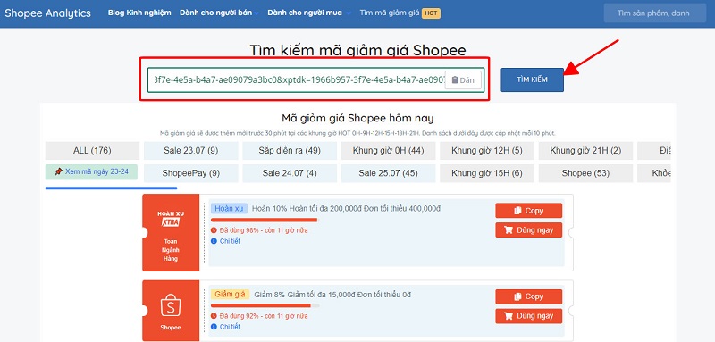 Bước 2: Dán link sản phẩm để tìm mã giảm giá Shopee