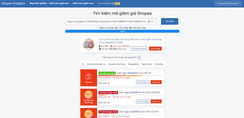 Để có thể hỗ trợ chị em mua được túi ví trên Shopee với giá ưu đãi nhất. Shopee Analytics sẽ hướng dẫn chị em lưu và sử dụng mã giảm giá khi mua sắm túi ví trên Shopee.
