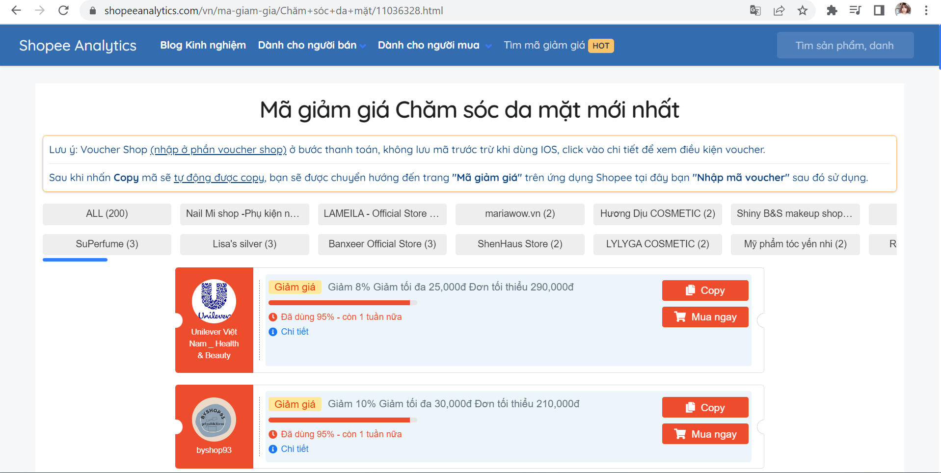 Trên đây là những mã giảm giá chăm sóc da mặt trên Shopee mới nhất, mã độc quyền do Shopeeanalytics gửi tặng tới bạn. Hãy nhanh tay lưu lại những voucher "nóng bỏng" này để mua hàng với mức giá ưu đãi nhất nhé!