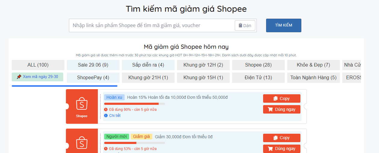 - Bước 2: Dán link sản phẩm vừa cop để tìm mã giảm giá trên Shopee Analytic bằng link: https://www.shopeeanalytics.com/vn/ma-giam-gia.html