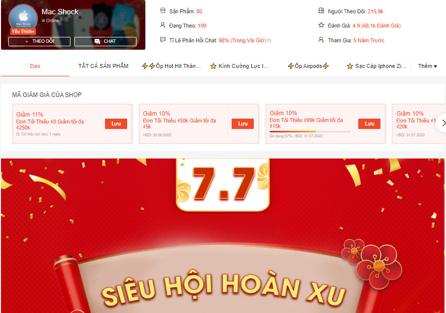 4. Top 5 shop bán phụ kiện điện thoại giá rẻ trên shopee 2022