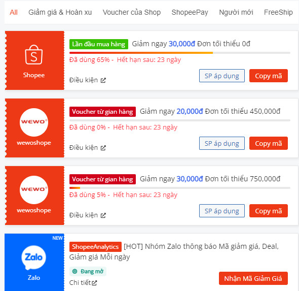 - Bước 2: Tại trang kết quả trả về bạn kéo xuống để lựa voucher phù hợp hoặc dùng bộ lọc để tìm nhanh hơn