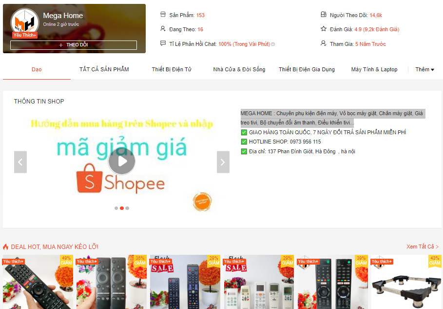 4. Top 5 cửa hàng chuyên cung cấp phụ kiện tivi uy tín trên Shopee