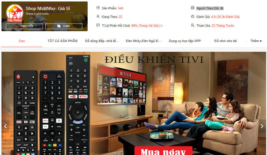 Cũng giống như Mega home, Shop Nhật Như cũng khá có tiếng với các sản phẩm phụ kiện tivi như điều khiển, dây cáp nối.. trên Shopee. Gian hàng này mới có chưa đầy 2 năm hoạt động song vẫn khá hút khách bởi các thiết bị phụ kiện TV mà mình cung cấp.