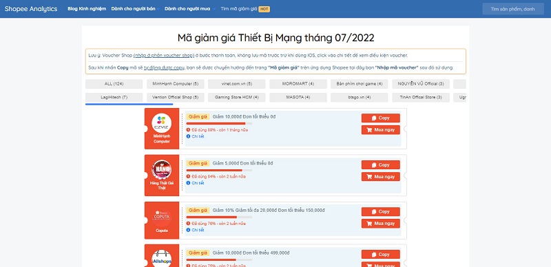 Chắc hẳn bạn cũng đã tìm được sản phẩm thiết bị cài đặt mạng máy tính mà bạn muốn mua trên Shopee. Trình duyệt tìm mã giảm giá Shopee Analytics sẽ giúp bạn tổng hợp toàn bộ voucher có thể áp dụng cho đơn hàng của bạn. Bạn tiến hành copy link sản phẩm bằng cách sau: