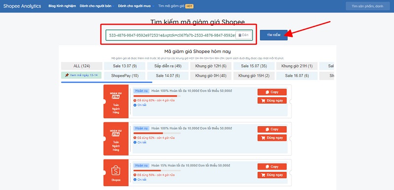 Tiếp theo, bạn dán link sản phẩm vừa lưu và nhấn Tìm kiếm là xong. Phần Trình duyệt sẽ hiện lên toàn bộ voucher, mã giảm giá mà bạn có thể sử dụng cho thiết bị cài đặt mạng máy tính.