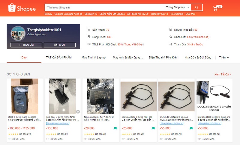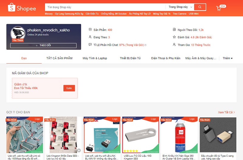 Shop phukien_revodic_xakho so với những shop trên thì shop mới bán trên Shopee được hơn 1 năm. Nhưng đã thu về lượt người theo dõi, lượt đánh giá, mua hàng khá cao cùng với nhiều sản phẩm đa dạng.