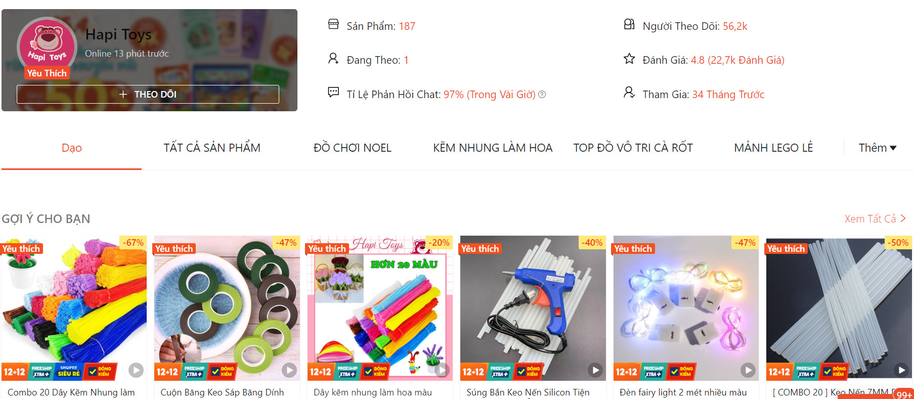 Đây cũng là một trong những shop bán dây kẽm nhung khá chạy trên sàn S hiện tại. Đặc biệt combo 200 dây hiện gian hàng này cũng chỉ bán với mức giá từ 19K/combo. Ngoài ra, shop này cũng có bán keo nến, keo sáp cho bạn mua về làm cây thông nha.
