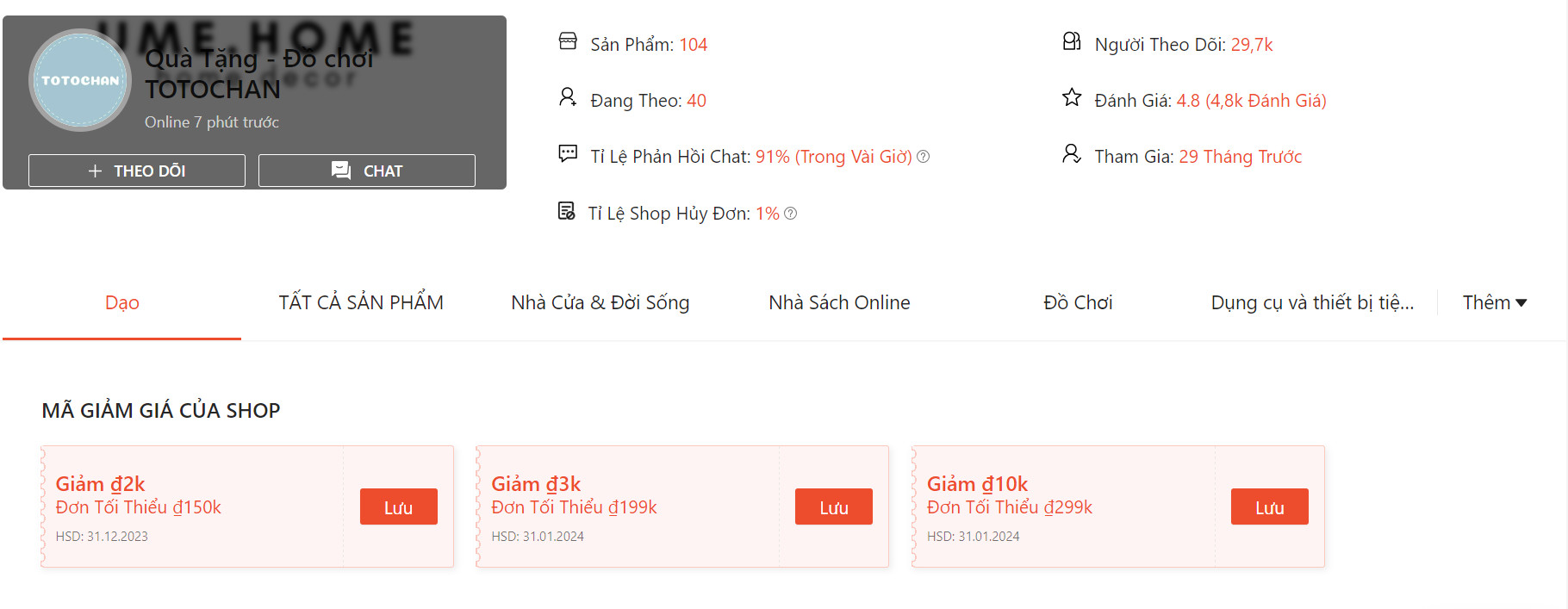 Totochan cũng là gian hàng chuyên phụ kiện handmade khá uy tín mà bạn nên tham khảo. Ở đây, bạn sẽ tìm thấy đủ các loại phụ kiện làm cây thông không thiếu thứ gì. Từ dây, keo đến đế cây đều có. Feedback của khách mua tại đây cũng khá ổn, giá cũng hợp lý. Nhớ lưu ngay shop này để tham khảo bạn nhé.