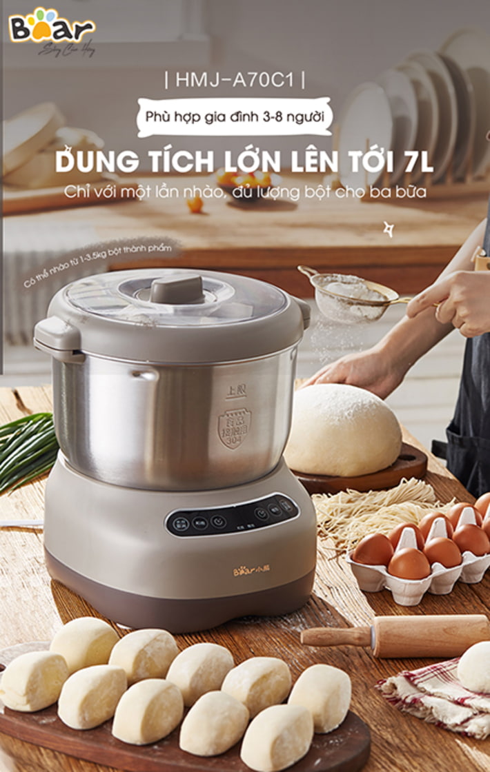 Máy nhồi bột Bear Mini là sản phẩm mới của hãng điện gia dụng Bear. Sản phẩm mới này của Bear phát huy được hết những ưu điểm của máy đời trước và được cải tiến thêm như là dung tích lớn hơn, có thể nhồi tối đa 2,5kg bột khô. Máy có dung tích khá lớn nhưng lại có thiết kế cải tiến nhỏ gọn, nhẹ hơn hẳn so với dòng máy 3.5L trước đó.