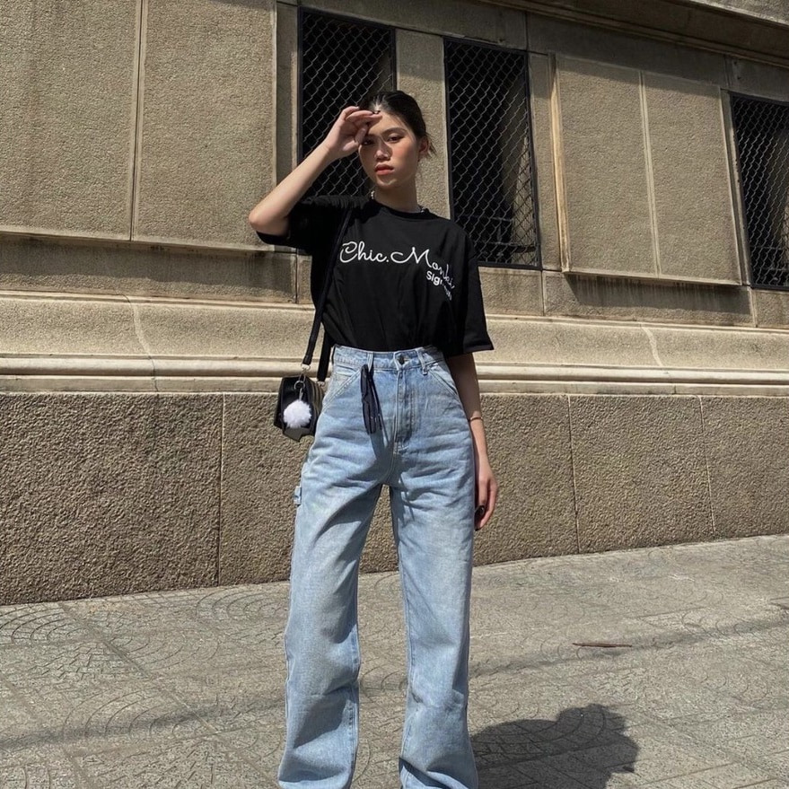 Áo phông + quần jeans chắc chắn sẽ là sự kết hợp "huyền thoại" mà bất kỳ cô nàng nào cũng nghĩ đến đầu tiên vì sự đơn giản và thoải mái mà outfit này mang lại. Cách phối này giúp người mặc trông trẻ trung và năng động hơn, ngoài ra nó cũng phù hợp với nhiều vóc dáng người khác nhau, nên chị em mũm mĩm cũng tha hồ ''đu'' theo được nhé.