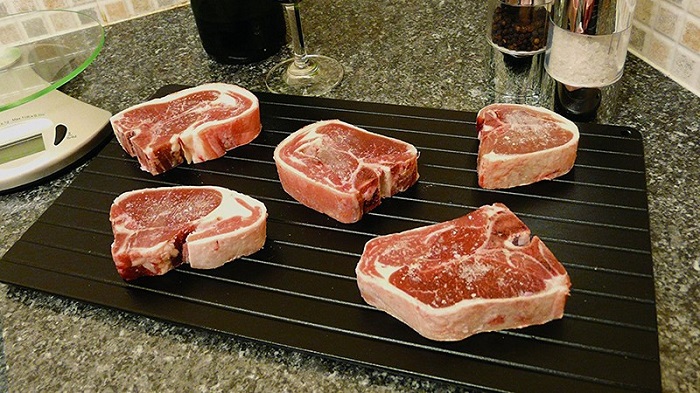 Khay rã đông thực phẩm sẽ giúp bạn rã đông thịt của mình một cách nhanh chóng nhất. Bạn không cần bỏ thịt vào lò vi sóng để rã đông mà chỉ cần bỏ lên khay là có thể thấy được kết quả siêu tốc. Đặc biệt khay được làm từ chất liệu nhôm cao cấp và không cần điện hoặc pin nên bạn có thể yên tâm sử dụng.