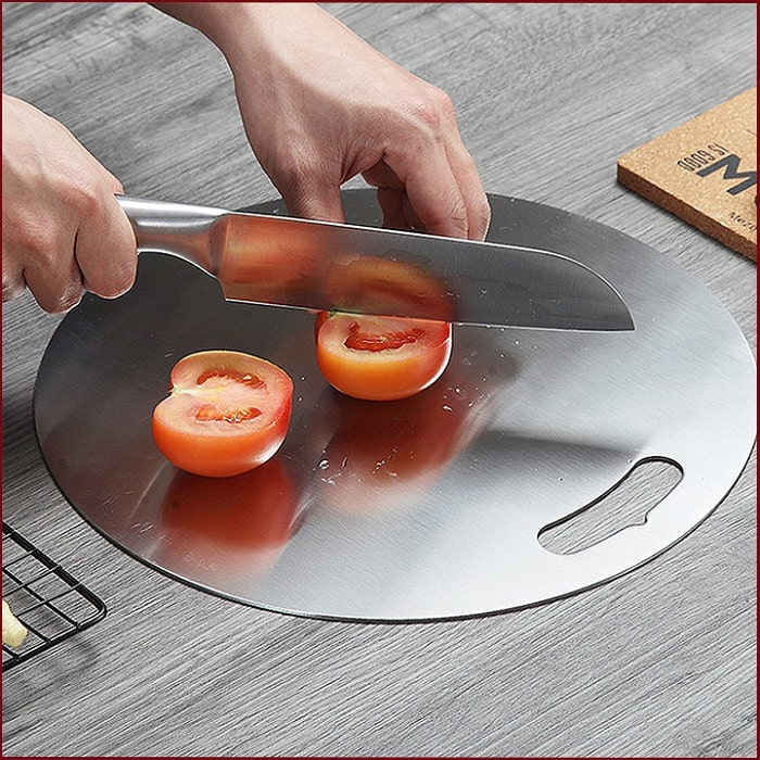 Thớt có độ bền được làm từ chất liệu inox 304 cao cấp với độ bền cực cao. Thêm vào đó thớt được thiết kế chỉ 0,1mm nhưng mỗi chiếc thớt nặng 1kg nên bạn có thể dễ dàng mang vác, di chuyển. Đặc biệt thớt vô cùng chắc chắn, bạn không lên chặt thức ăn trên thớt nếu không sẽ làm hỏng dao của bạn.