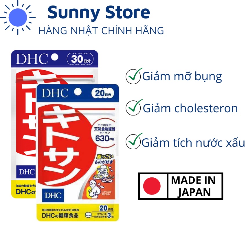 - Thành phần: Viên uống giảm eo DHC Nhật có chứa Chitosan nguồn gốc hải sản.