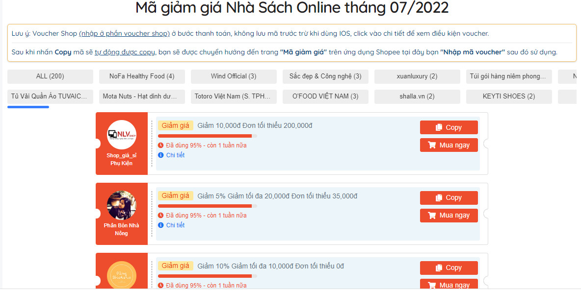 Đường link chia sẻ trên đây của chúng tôi sẽ gồm hơn 500 mã giảm giá khi đặt sách online áp dụng với các nhà sách bán hàng tại Shopee. Bạn chỉ cần nhấn vào link sau đó chọn shop mà mình muốn mua để lấy mã giảm giá là được. Đặc biệt, các mã giảm này sẽ được chúng tôi cập nhật liên tục hàng ngày nên bạn hãy yên tâm rằng mỗi mã đưa ra đều là mới nhất với mức giảm tốt nhất.