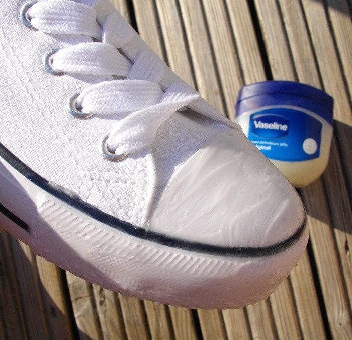 Vaseline được nhiều người biết đến là sản phẩm dưỡng da hiệu quả. Bên cạnh đó, Vaseline còn có tác dụng đánh bay vết bẩn trên đế của giày thể thao. Cách thực hiện cũng khá đơn giản, bạn chỉ cần bôi 1 lượng Vaseline vừa phải lên khắp vết bẩn trên phần đế giày. Sau đó, bạn lấy khăn giấy hoặc khăn ẩm lau sạch đi. Vậy là mọi vết bẩn đã biến mất.