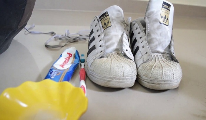Kem đánh răng không chỉ làm sạch, trắng răng mà còn có tác dụng vệ sinh giày mà ít ai biết. Sử dụng kem đánh răng để vệ sinh giày giúp làm sạch những vết ố, vết bẩn cứng đầu trên giày. Bạn bôi 1 ít kem đánh răng lên giày rồi dùng bàn chải đánh răng chà sạch và giặt lại bằng nước sạch là xong. Kem đánh răng cũng được sử dụng để vệ sinh những bộ phận khác trên giày với chất liệu cao su hay nhựa rất hiệu quả đó.