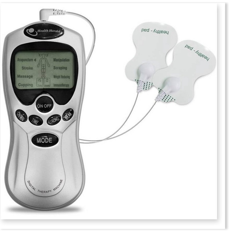 Máy có 2 kênh, mỗi kênh 4 cực (4 miếng dán) và có điện áp là 4.5V.
