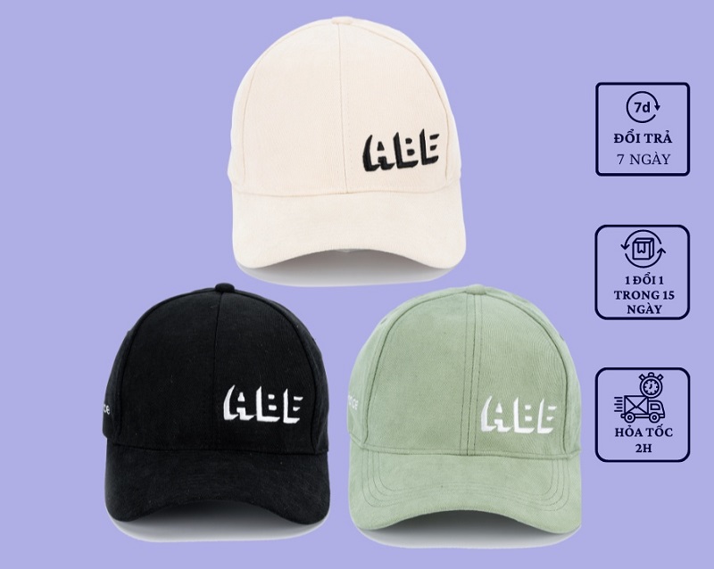 Mũ lưỡi trai nam ABE mang phong cách trẻ trung, tươi mới tràn đầy năng lượng. Họa tiết thêu nhung độc đáo cùng với những màu sắc nổi bật như xanh, be và đen, chắc chắn đây sẽ là chiếc mũ thời thượng nhất cho những ai theo đuổi sự sành điệu, năng động.