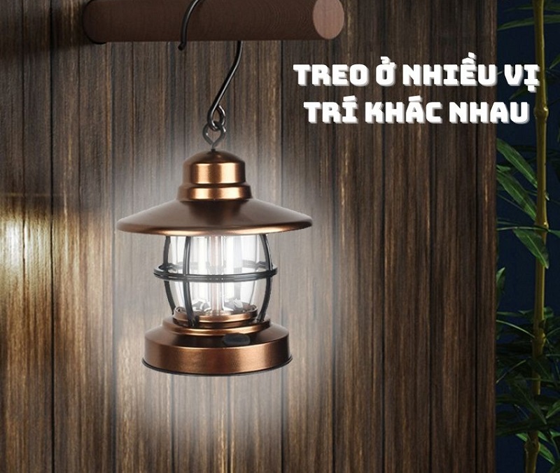 Kích thước của đèn rộng 8.5cm và dài 12.5cm, có màu vàng đồng. Chiếc đèn này thiết kế theo phong cách cổ điển, trông nó rất phù hợp với mỗi buổi cắm trại. Đèn dùng pin AAA, có thể sáng liên tục trong 8-10 tiếng. Thiết kế rất nhỏ gọn có thể treo hay cầm tay khá dễ dàng. Có thể nói nó rất đa năng, nếu không dùng trong buổi cắm trại thì có thể dùng cho những hoàn cảnh khác sao cho thích hợp.