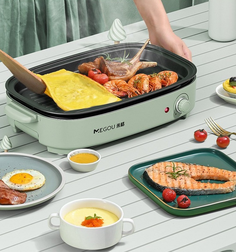 Loại bếp nướng tiện lợi này làm cho công việc nấu ăn của chị em sẽ được nhanh, gọn, lẹ hơn so với nấu riêng từng nồi. Thiết kế nhỏ gọn và có màu xanh mint khá xinh xắn. Chất liệu là thép không gỉ, chống dính cao cấp giúp việc nấu ăn trở nên đơn giản hơn. Bếp có 2 khay: 1 lẩu, 1 nướng cho bạn tha hồ lựa chọn tùy theo nhu cầu sử dụng của bạn là gì.