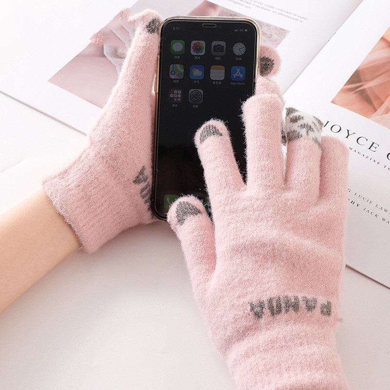 5. Găng tay len hoạt hình phối mặt gấu hai màu