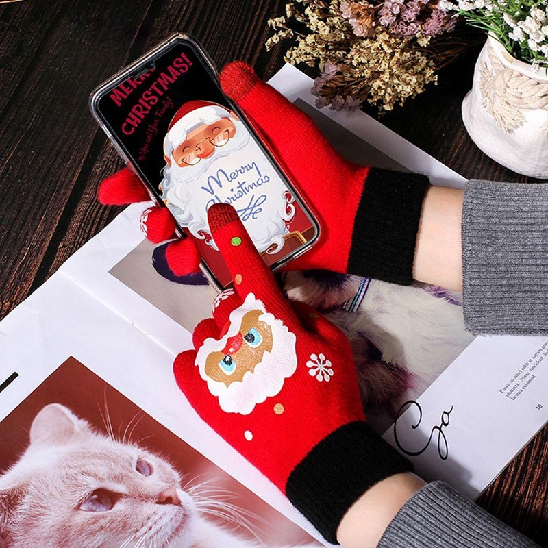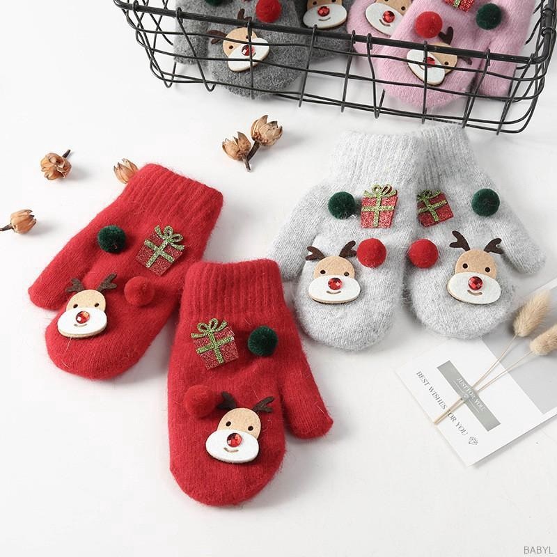 3. Găng tay nhung mềm mại giữ ấm in hình ông già noel phong cách Hàn Quốc