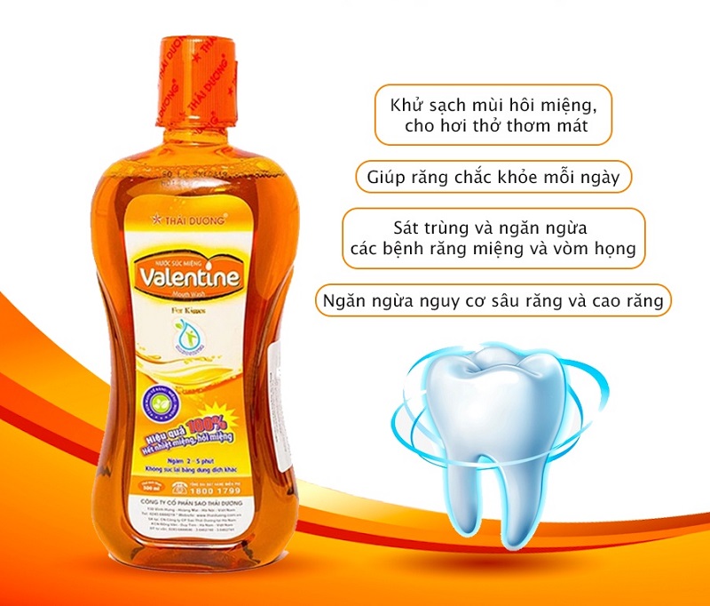 Nước súc miệng Valentine là sự kết hợp giữa Nano bạc chuẩn Châu u và các tinh dầu tự nhiên giúp tiêu diệt vi khuẩn, làm sạch khoang miệng, chữa nhiệt miệng hiệu quả,... Sản phẩm không chứa cồn Ethanol, êm dịu, nhẹ nhàng nên sử dụng được cho trẻ nhỏ và người lớn mà không cần phải pha loãng. Bạn nên sử dụng sản phẩm 2 lần mỗi ngày sau khi đánh răng.