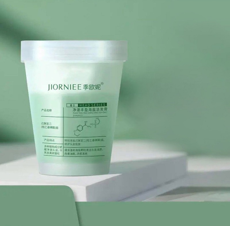 Jiorniee là sản phẩm nội địa Trung, có chiết xuất từ muối biển và chanh, có khả năng kiềm dầu và kiểm soát dầu tốt. Đây là sản phẩm chăm sóc tóc tại nhà khi tóc bị bết, không có độ bồng bềnh,... Thành phần gồm muối và chanh có khả năng làm sạch gàu hiệu quả, không bị ngứa đầu.