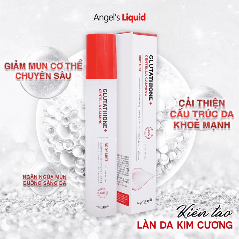 Xịt giảm mụn lưng Angel Liquid Body Mist Glutathione Plus là một sản phẩm đến từ Hàn Quốc nhưng lại rất phù hợp với làn da của người Việt Nam. Thành phần có chứa rau má, trà xanh và tràm trà đây là những thành phần có tính giảm khuẩn tự nhiên, loại bỏ bụi bẩn và dầu thừa giảm sự phát triển của mụn và ngăn ngừa để lại sẹo thâm hiệu quả.