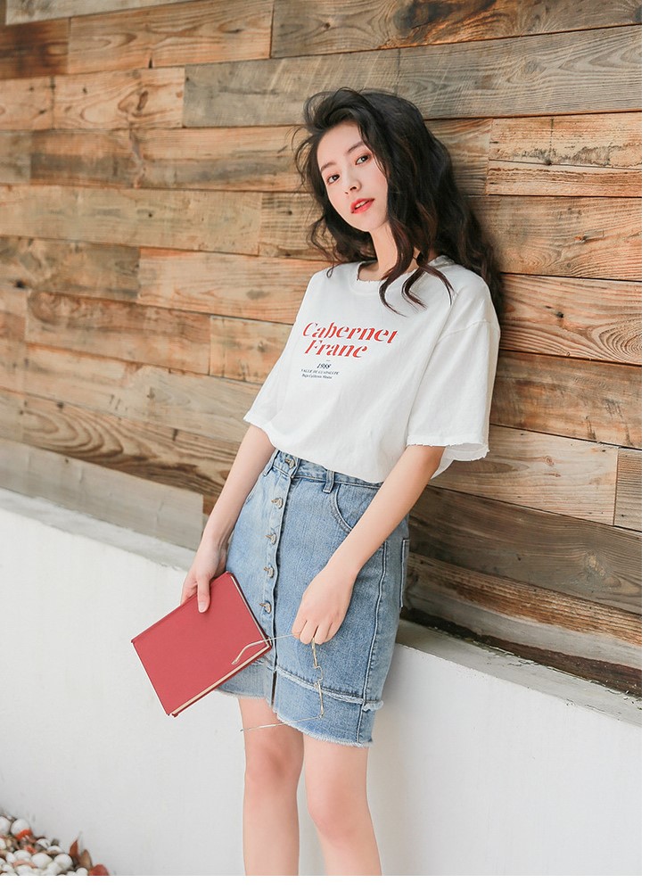 Kết hợp áo phông với chân váy denim là cách phối đồ đơn giản nhất mà nhiều cô nàng có thể ứng dụng ngay. Với outfit như thế này, bạn sẽ có được vẻ đẹp khỏe khoắn, trẻ trung và năng động. Tùy theo phong cách mà cá nhân đang theo đuổi, bạn có thể mặc áo phông oversize hoặc dáng bó để khoe trọn lợi thế hình thể.