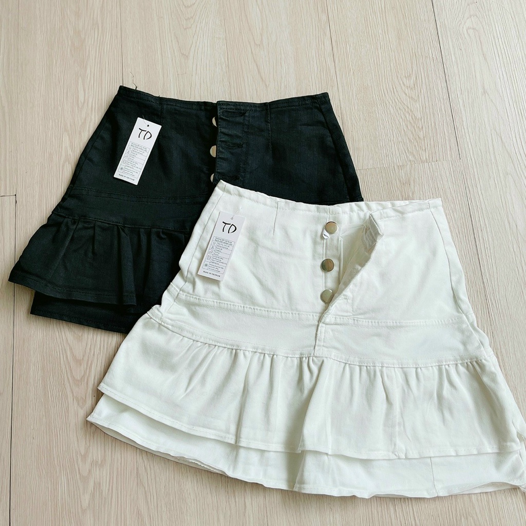2. Chân váy Jean ngắn 2 tầng, dáng xòe, nút cài