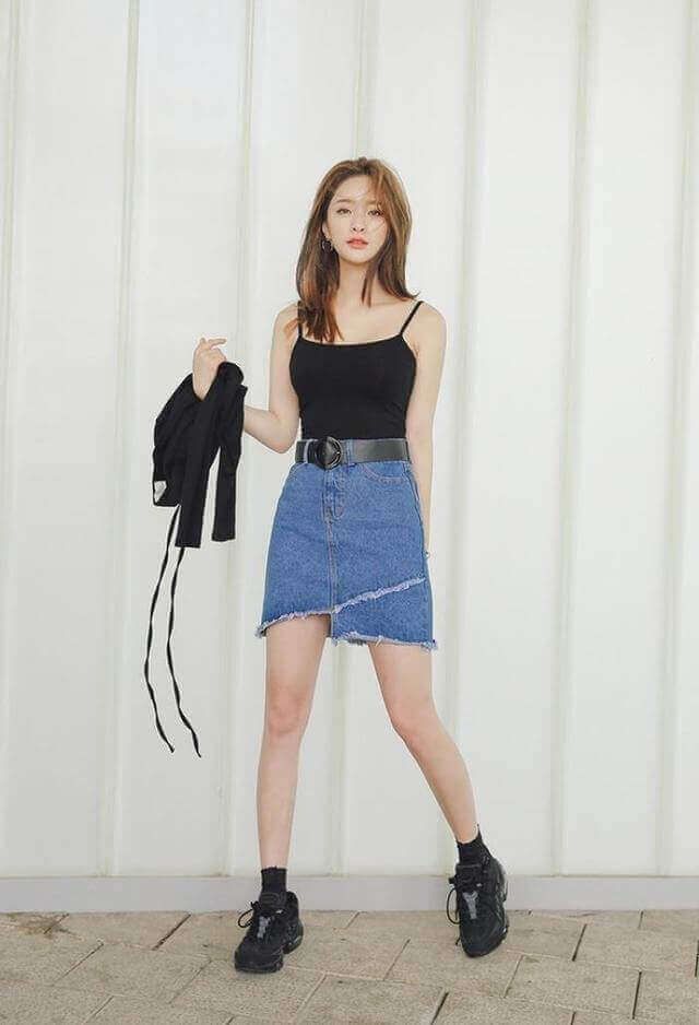 Trở nên quyến rũ với chân váy jean là phương án được nhiều bạn trẻ lựa chọn. Một chân váy jean ngắn chữ A và một chiếc áo cúp ngực/ 2 dây tôn lên đường cong cơ thể, bạn sẽ trông vô cùng quyến rũ và thu hút.