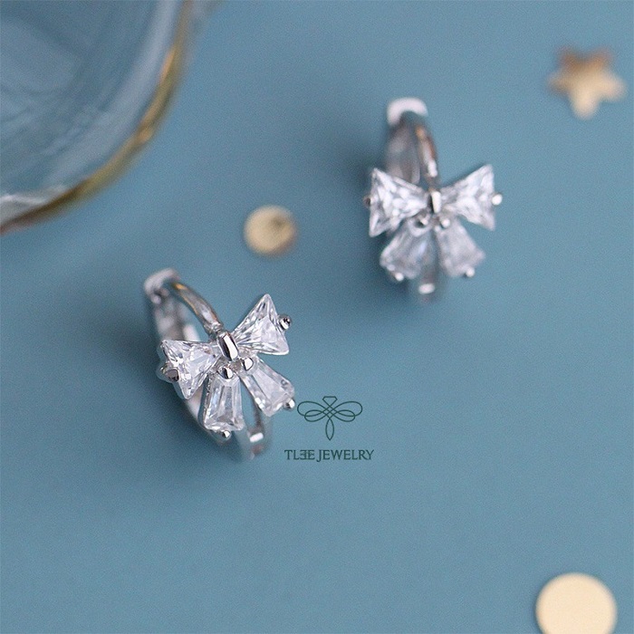- Khuyên tai bạc nữ tròn nơ bấm mini