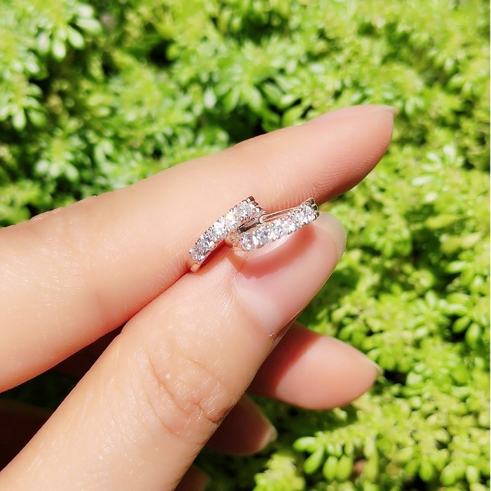 4. Khuyên tai bạc khuyên tròn sát tai đính đá bạc