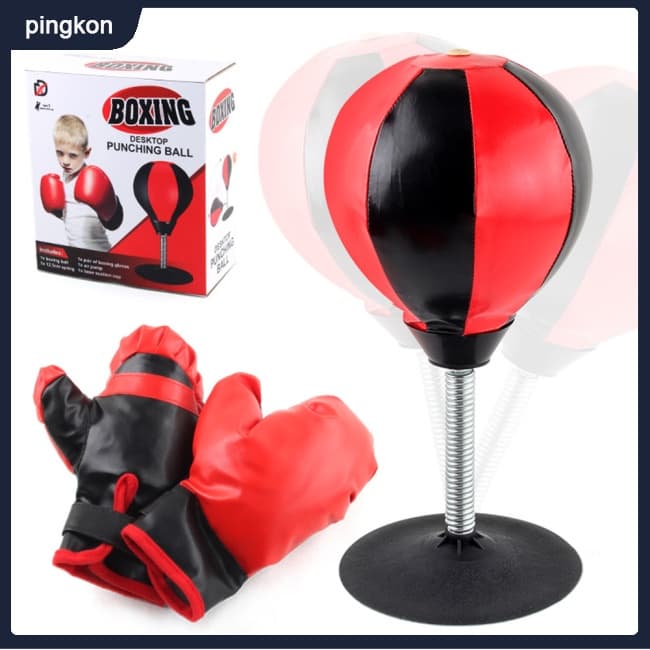 Bóng đấm bốc để bàn bằng PU kèm lò xo thép giảm căng thẳng. Sản phẩm có phần da PU dày dặn, bên trong được sục khí, tạo cảm giác đánh tốt. Bạn có thể để quả bóng này ở bàn làm việc để tiện giải tỏa stress khi cần.