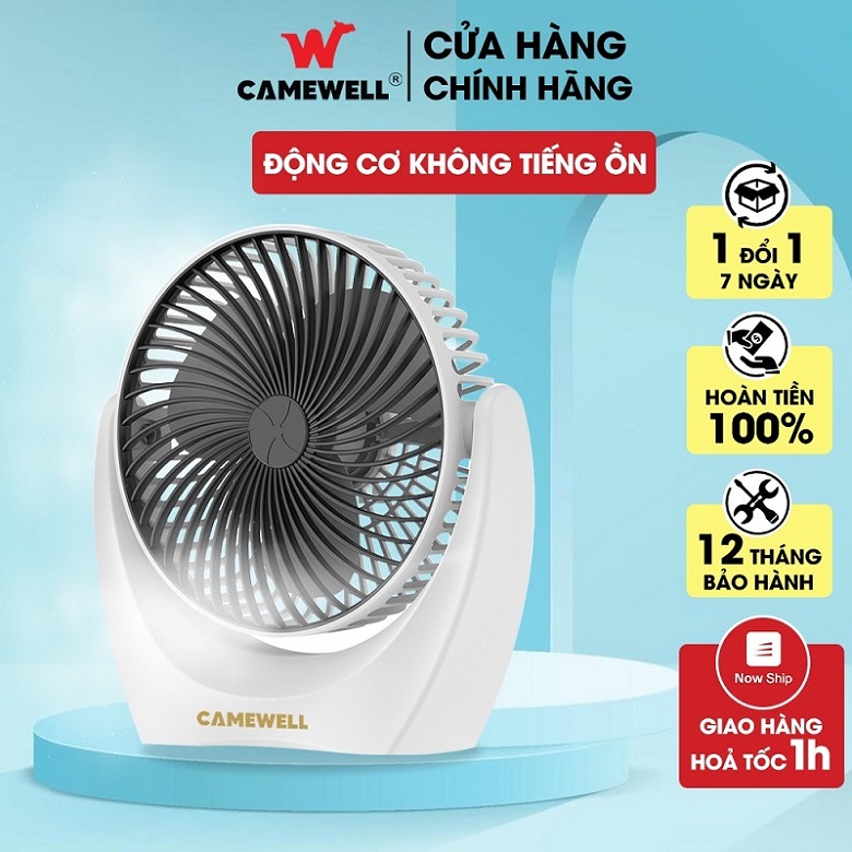 Quạt để bàn làm việc mini CameWell có xuất xứ từ Trung Quốc. Sản phẩm có 6 chức năng với 2 chế độ gió là gió nhẹ không khô nóng và gió mạnh, nhanh chóng thổi bay mồ hôi.