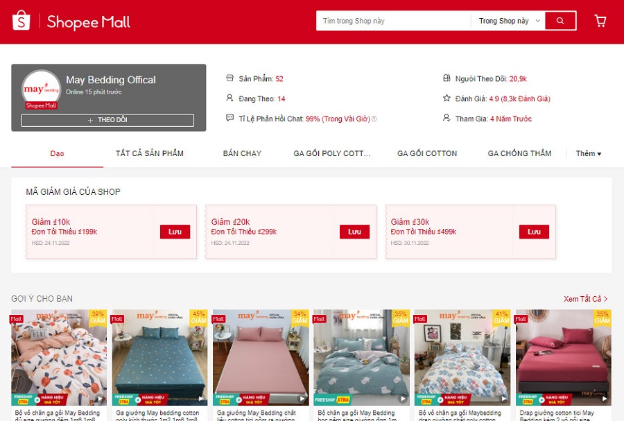 May Bedding Offical là địa chỉ chuyên cung cấp các dòng sản phẩm chăn ga gối đệm cho cả người lớn và trẻ em, tại shop bạn sẽ có nhiều mẫu mã mới từ thiết kế đến màu sắc cho bạn lựa chọn. Cửa hàng chuyên về chất liệu poly cotton mềm mịn thoáng khí dễ chịu cho bạn cùng với nhiều kích thước và kiểu dáng cho bạn chọn lựa. Đây là địa chỉ để bạn lưu tâm và tham khảo trên Shopee.