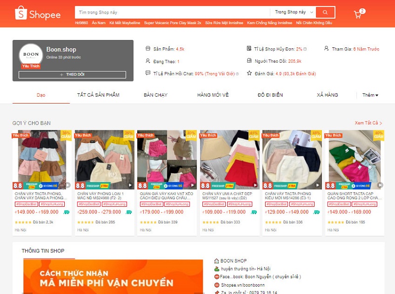 Boon.shop là đơn vị sỉ lẻ quần áo với mức giá tốt và Shop luôn cố gắng tìm, chọn ra những sản phẩm chất lượng nhất, mẫu mới nhất, hot nhất để gửi tới người tiêu dùng. Boon,shop tham gia bán hàng trên Shopee từ 6 năm trước với lượt theo dõi siêu khủng 205,8K và 93,2K đánh giá nên bạn có thể yên tâm khi lựa chọn Boon.shop làm địa chỉ mua hàng.