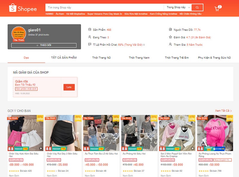 Giare01 là đơn vị chuyên sỉ lẻ ôm lô số lượng lớn quần áo thời trang nam nữ giá rẻ và Shop luôn đem đến nhiều sản phẩm hot, đẹp nhất tới tay người dùng nên bạn có thể yên tâm nhé. Với 5 năm kinh nghiệm thực chiến trên Shopee, Shop thu về 77,4K người theo dõi và lượt đánh giá đạt 4.7* tương đường 31,8K đánh giá từ những khách hàng đã mua và trải nghiệm sản phẩm.