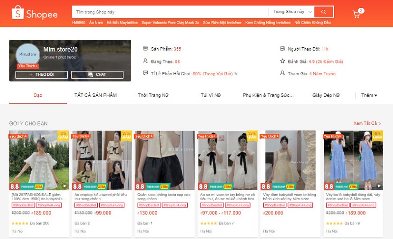 Mim.store20 đã tham gia bán hàng trên Shopee từ 4 năm trước, thu về được lượt người theo dõi là 10,9K và số lượng đánh giá đạt 4.9* tương đương 1,9K đánh giá. Khi bạn mua hàng lần 2 tại Shop, bạn sẽ nhận được voucher giảm giá từ Shop nếu bạn inbox ngay cho Shop.